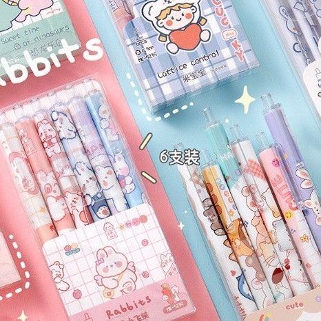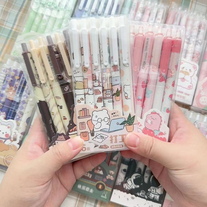 Hani 6pcs pulpen gel set pulpen aesthetic tinta hitam pena gel pen lucu pink school stuff pulpen 1 pack stationery kore