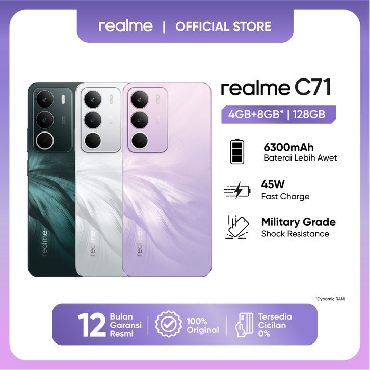 [Mall] TERBARU REALME C71 4GB+8GB* 128GB 6300MAH MASSIVE BATTERY 45W FASH CHARGER 120HZ NFC GARANSI AKTIF BEST SELLER