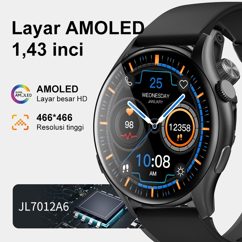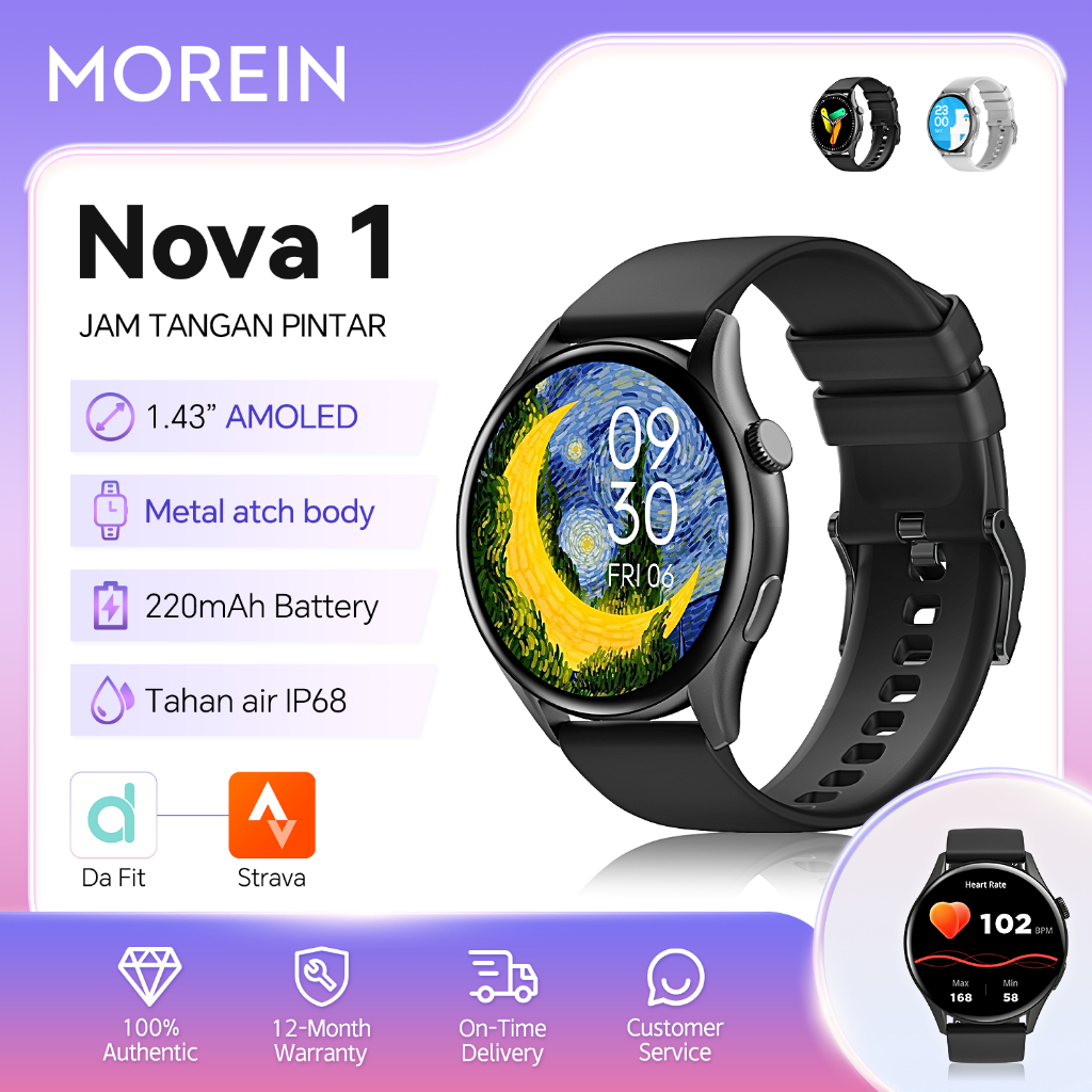 Morein Smart Watch Nova1 AMOLED 1,43'' Tahan Air IP68 Jejak Olahraga 100+ Watch Face