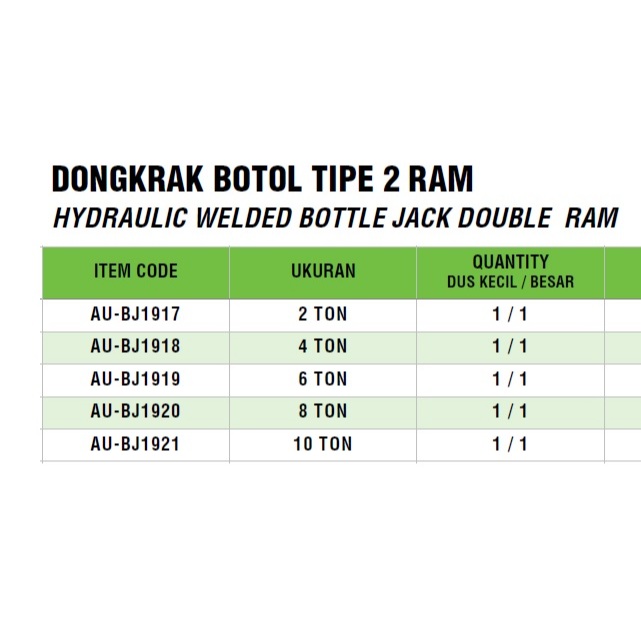 TEKIRO AU-BJ1919 DONGKRAK BOTOL PENDEK TIPE 2 RAM - 6 TON