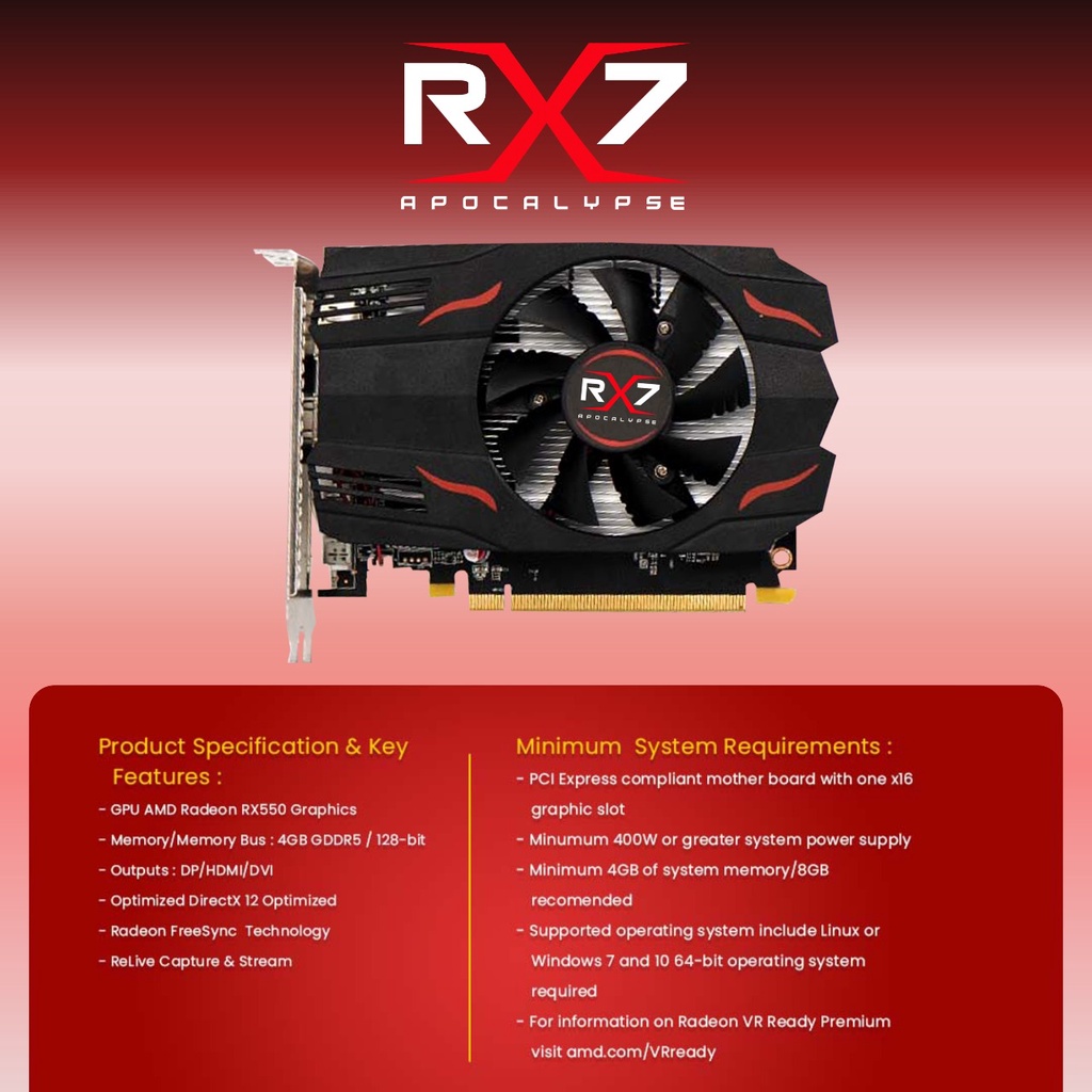 VGA RX7 RX 550 4GB GDDR5 128 BIT Real Capacity Resmi