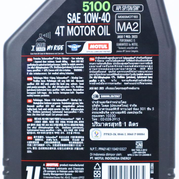 oli motor Motul 5100 4T SAE 10W-40 1 Liter API SM/SL Ester Oli Motor Pelumas Technosynthese Technology Original