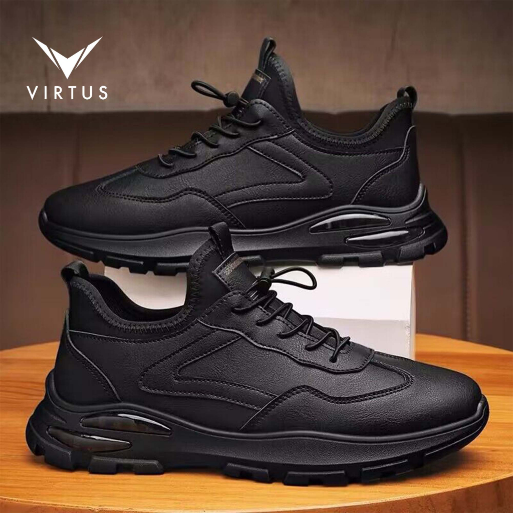 VIRTUS Wear 39 - 44 BOLT Black Hitam - Sepatu Sneakers Pria Olahraga Running Casual Shoes Lari Tali Sekolah Casual