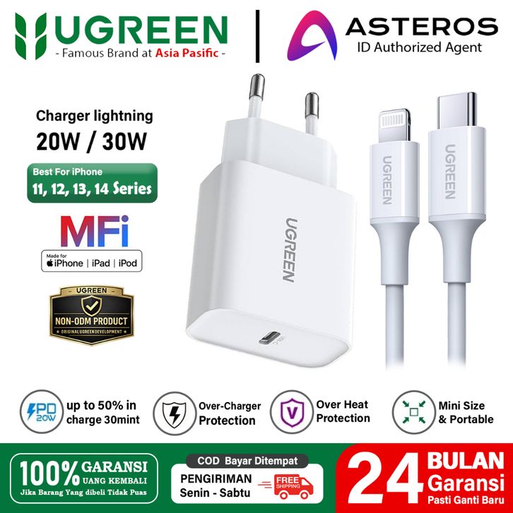 UGREEN Charger iPhone 20W - 30W Type C to Lightning Mfi Fast Charging iPhone 11 12 13 14 Series