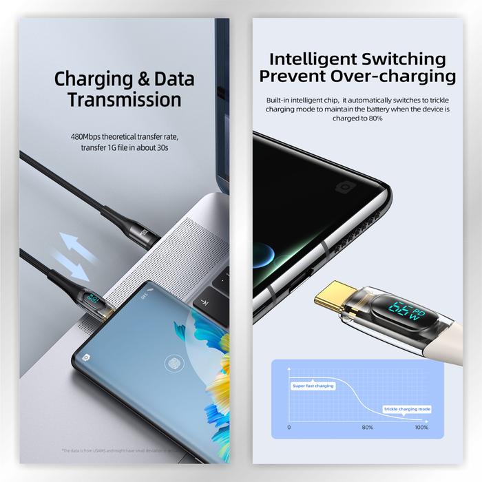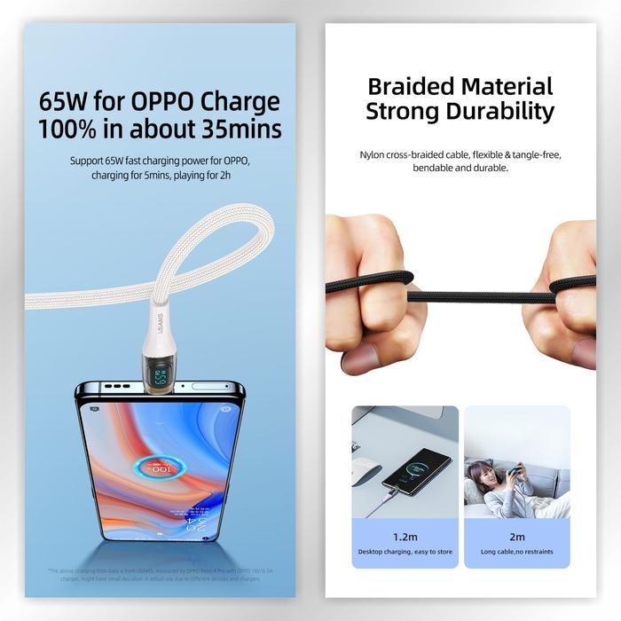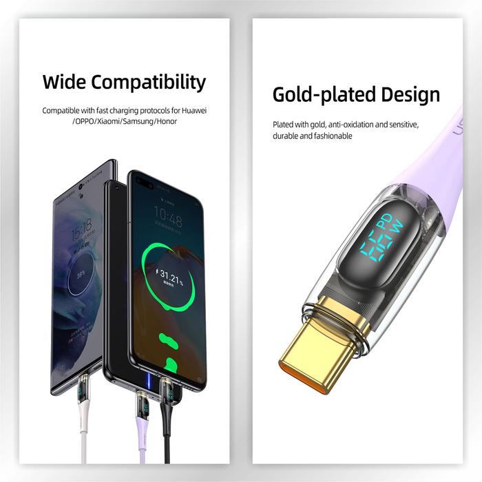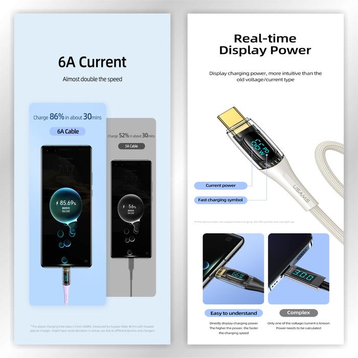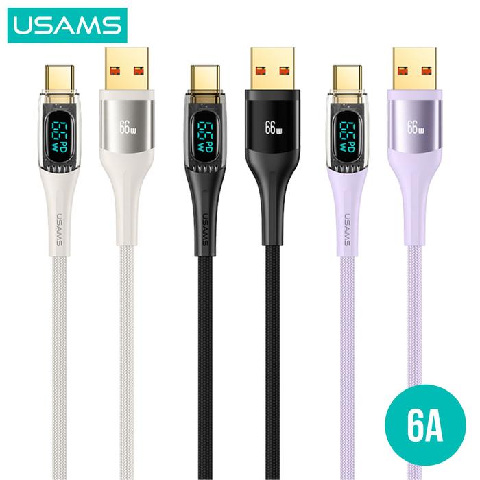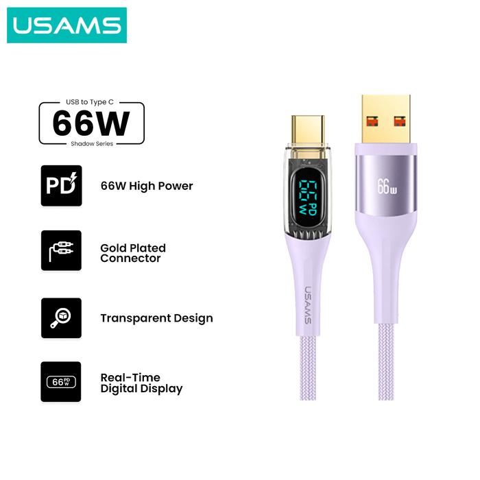 FLASH SALE USAMS SHADOW SERIES KABEL DATA TYPE C 66W TRANSPARENT DIGITAL DISPLAY HITAM 12 METER