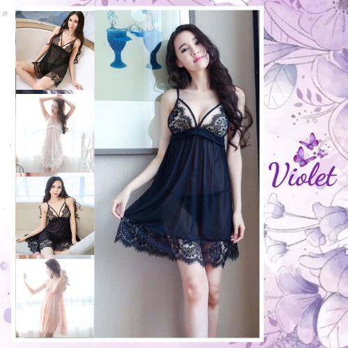 Lingerie Wanita Hot Binal Premium Babydoll Sleepshirt Pakaian Seksi Intimates Lace Bow Longnight Menggoda 1091