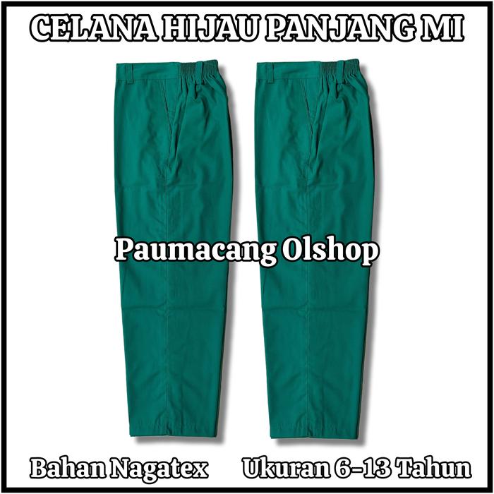 Setelan Seragam Sekolah MI Putih Hijau Anak Putra Baju Putih Polos Lengan Panjang Celana Hijau