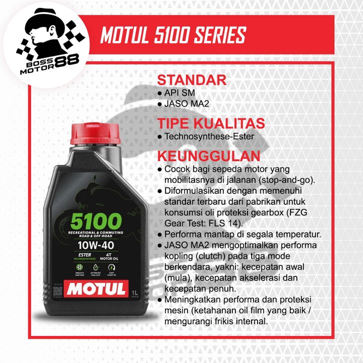 Oli Motor Motul 4T 5100 10W-40 1L - Oli Mesin Motor 4Tak Premium 100 Original