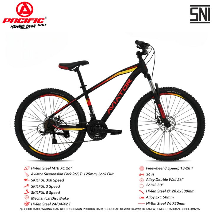 Pacific Sepeda Gunung MTB Aviator 2692 XT Ukuran Ban 26" 3x8
