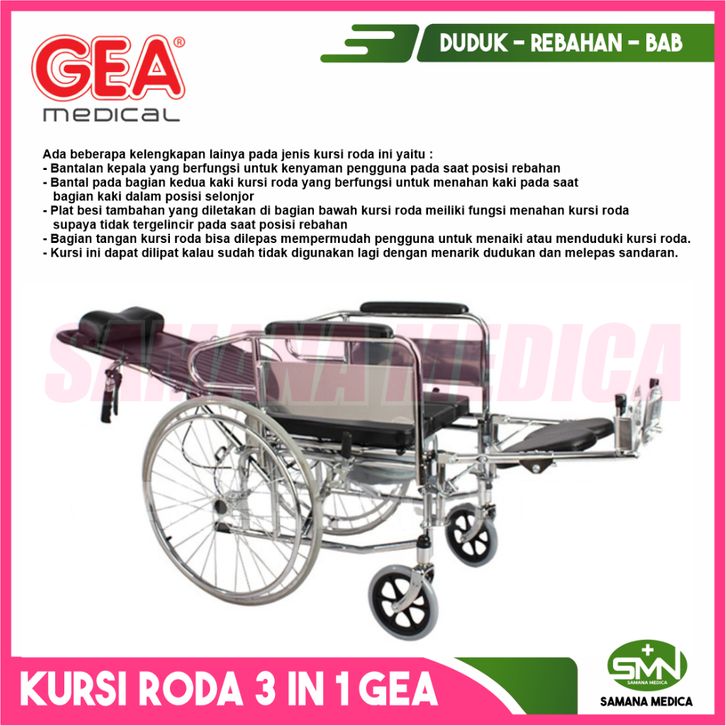 Kursi roda GEA FS608GC Kursi Roda 3 in 1 3in1 Serbaguna Multifungsi ( Selonjor + Berbaring + Duduk + BAB)