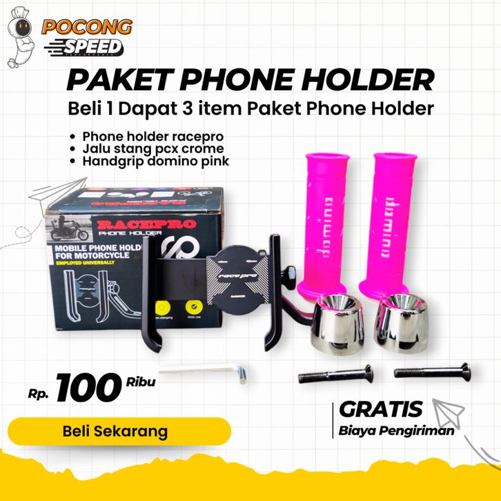 HOLDER HP MOTOR + JALU PCX CHROME + HANDGRIP DOMINO HOLDER SPION PHONE HOLDER RACEPRO GUB P30