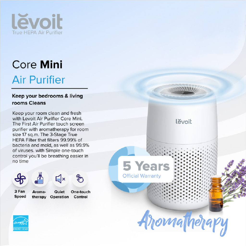 Air Purifier Levoit Core Mini Desktop Penjernih Pembersih Udara Ruangan With Fragrance Aroma Diffuser Original