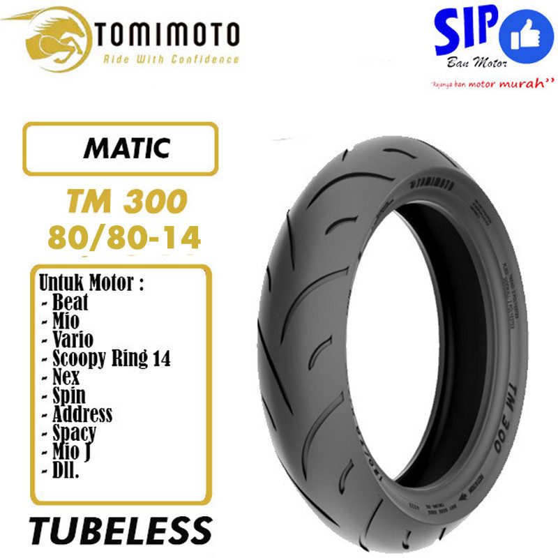 Ban motor matic Tomimoto TM300 ukuran 80 80 14 Tubeless Untuk motor beat mio vario 125