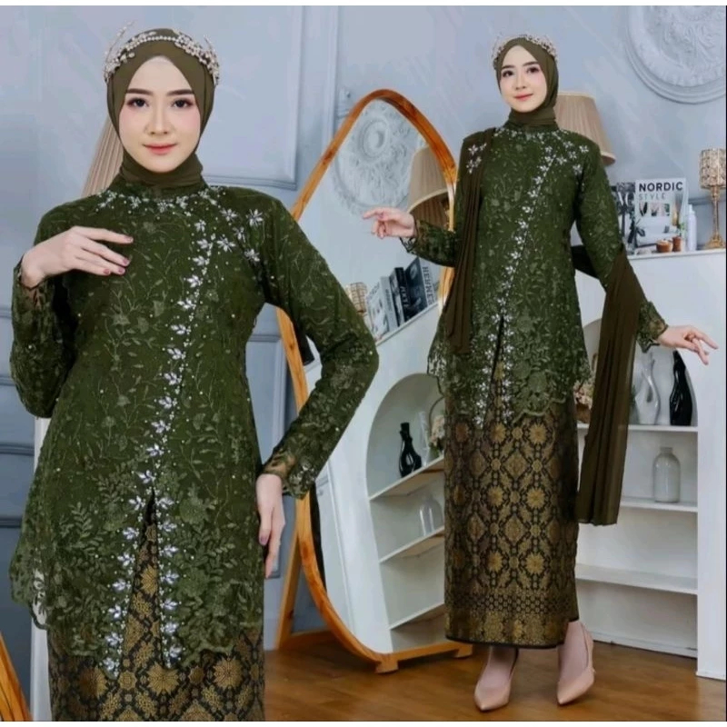 KEBAYA TILLE PAYET SELENDANG ROK SONGKET LILIT/ATASAN TAMARA/KEBAYA KONDANGAN/KEBAYA WISUDA/KEBAYA MEWAH DAN ELEGAN