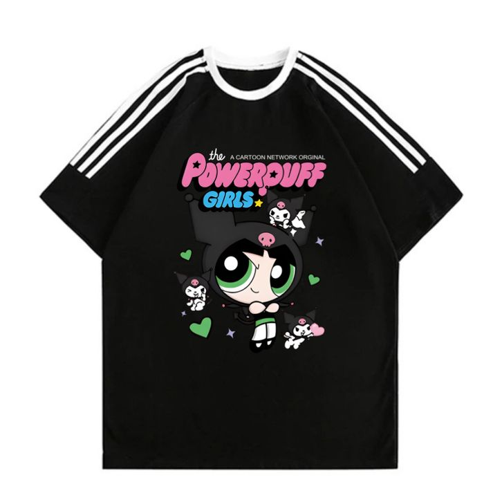 Jessica Tshirt Lengan Pendek Baju Kaos Oversize Garis Tiga Motif Kartun Powerpuff Girl Lucu Bahan 100% Cotton