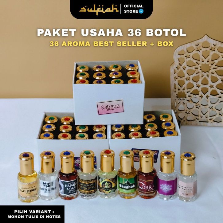 Sulfiah - Isi 36 Botol Paket Usaha Parfum Sholat Pria & Wanita 100 Aroma Arab Ukuran 6mili