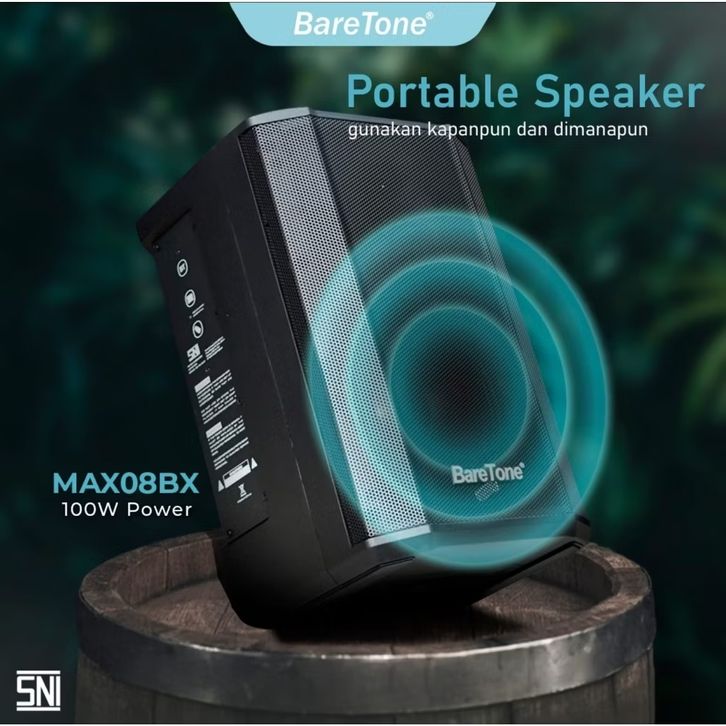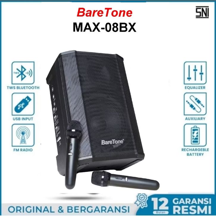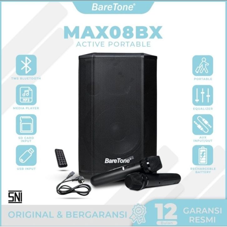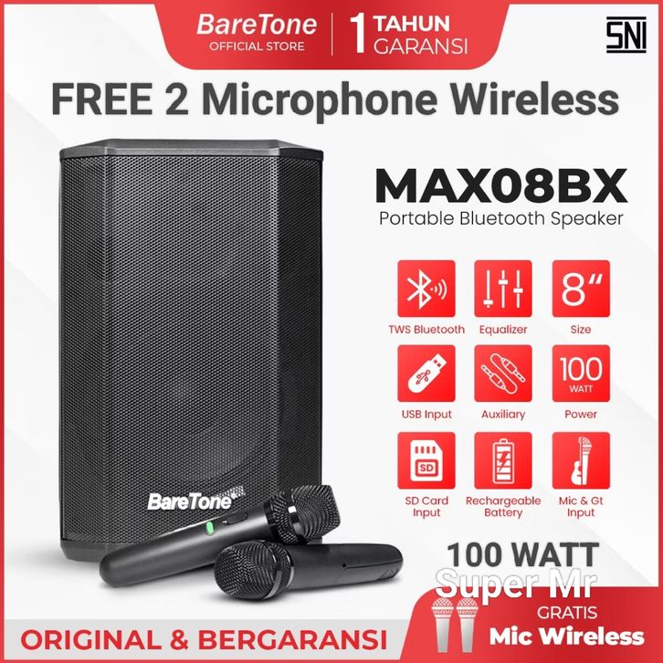 Baretone Speaker Bluetooth Portable MAX08BX 8 inch Free 2 Mic Wireless Speker MAX 08BX Speker Aktif Salon Bare tone