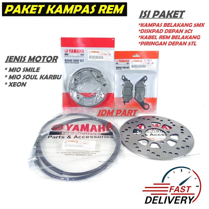PAKET KOMPLIT KAMPAS REM BELAKANG TROMOL DISKPAD DEPAN KABEL REM BELAKANG PIRINGAN DEPAN / YAMAHA MIO SMILE / MIO