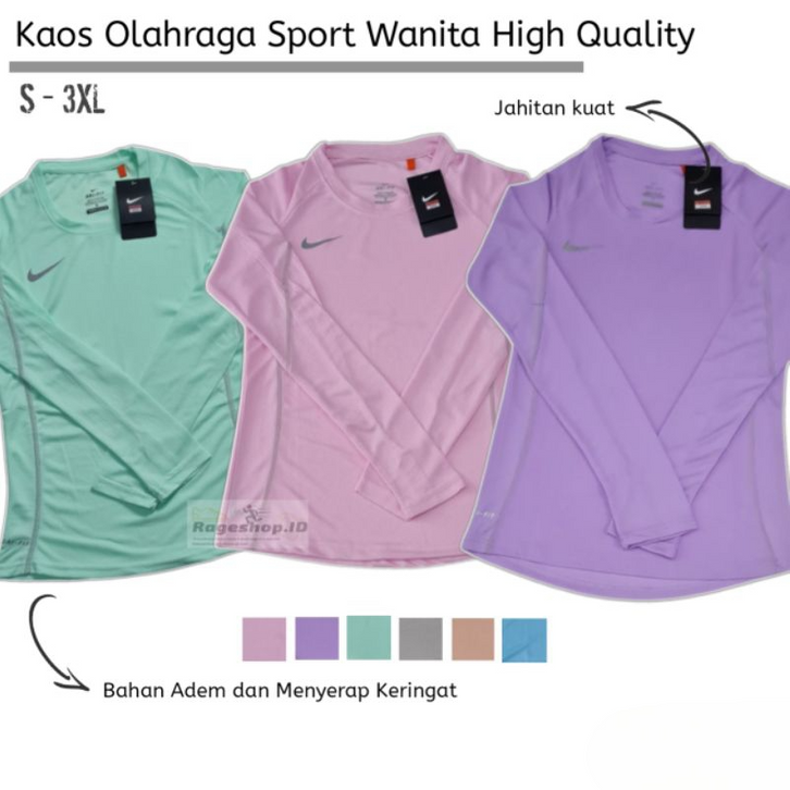 Baju Olahraga Running Senam Fitnes Gym Drifit Wanita/Perempuan Lengan Panjang