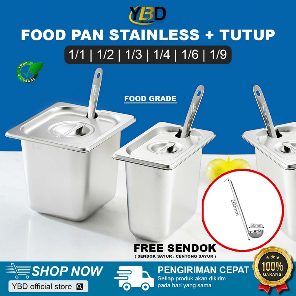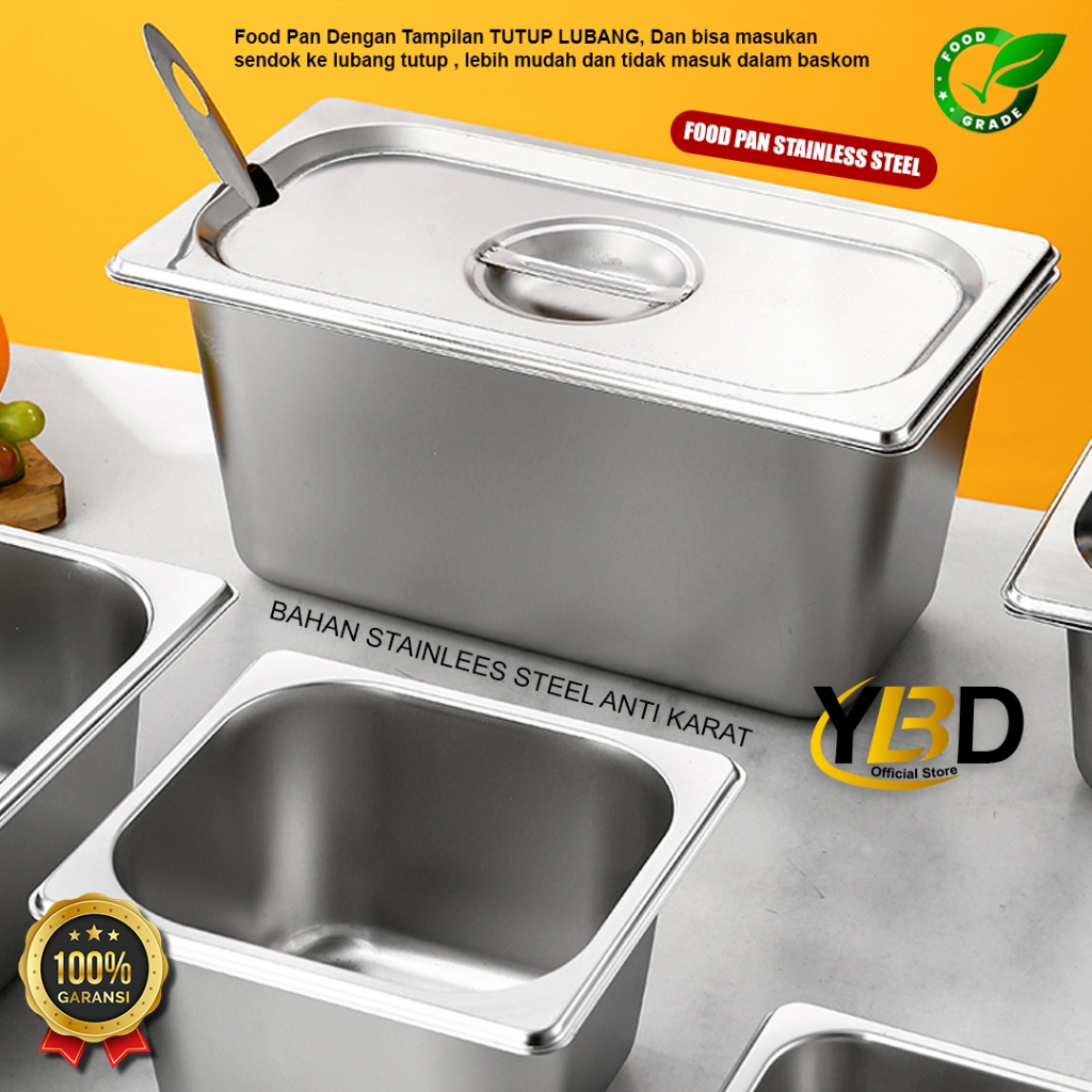 FOODPAN Stainless + Tutup Tersedia ukuran ( 1/1 x 6.5 - 10 - 15 || 1/2 x 6.5 - 10 - 15 || 1/3 x 6.5 - 10 - 15 | 1/4 x