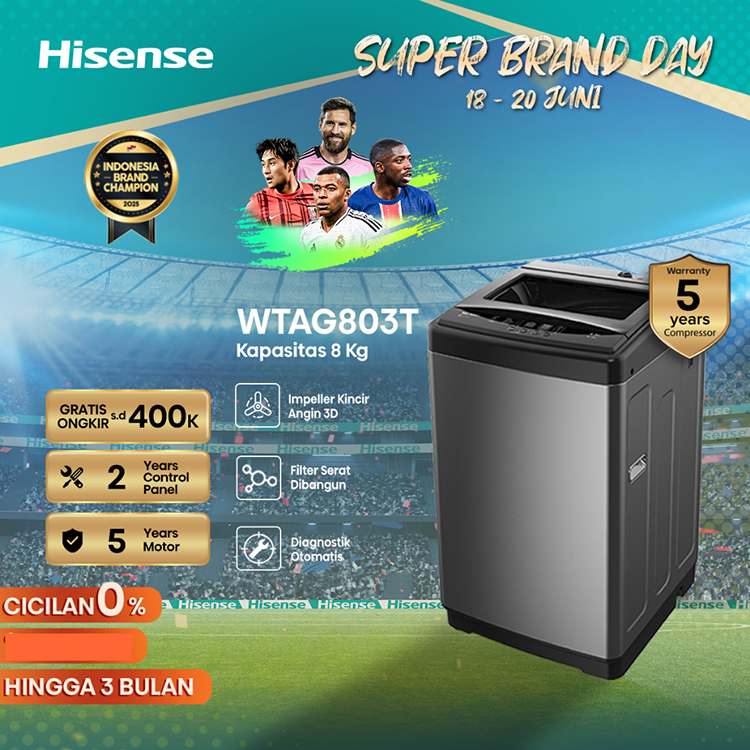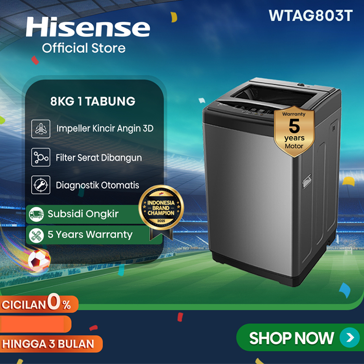 Hisense Mesin Cuci 1 Tabung Top Loading 8KG Washing Machine WTAG803T Garansi 2 tahun Glass lid 10 Precision Water Level
