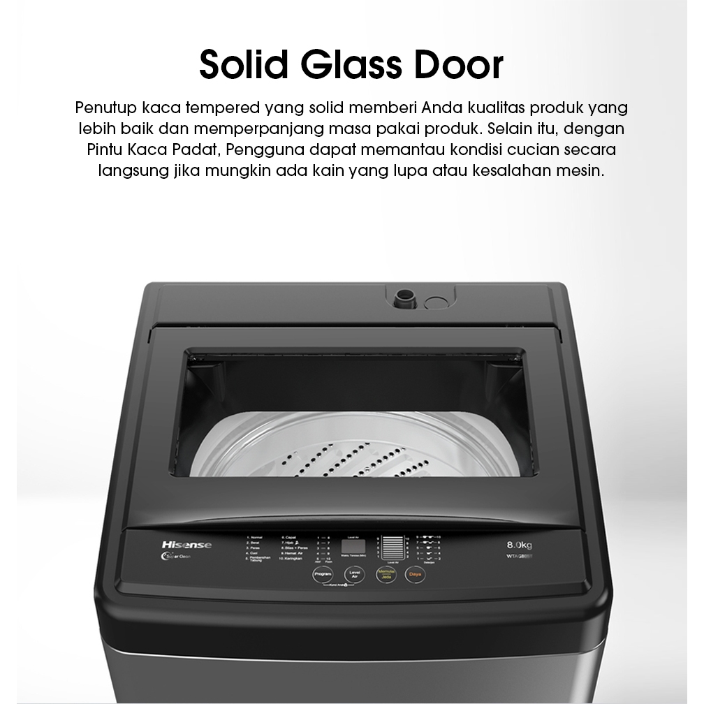 Hisense Mesin Cuci 1 Tabung SP - Top Loading 8KG Washing Machine WTAG803T Garansi 2 tahun Glass lid 10 Precision Water