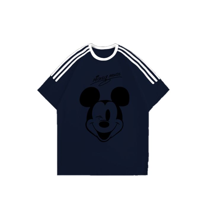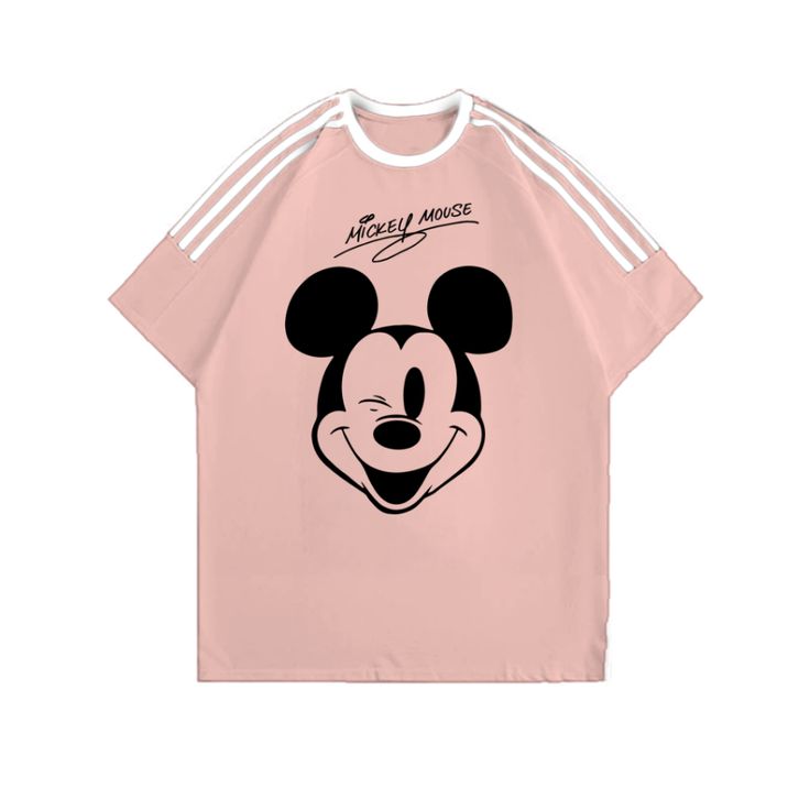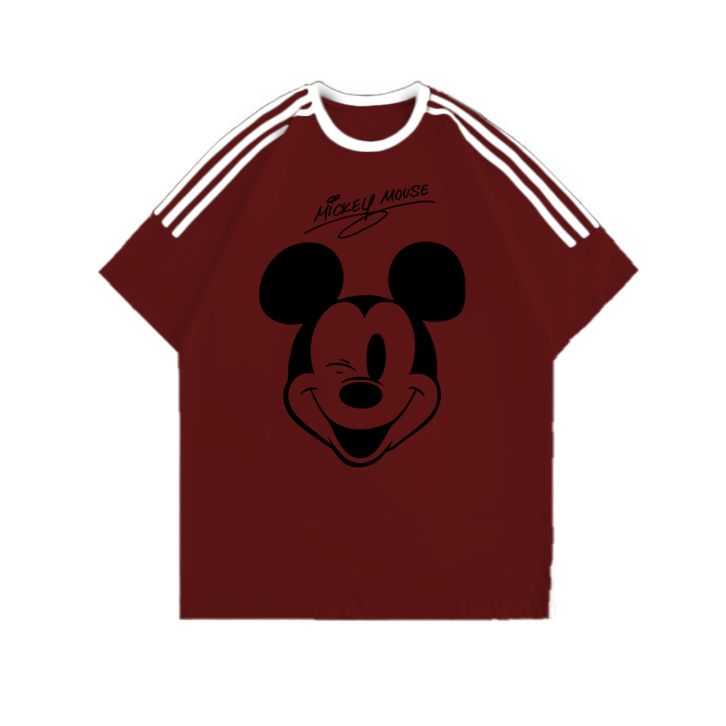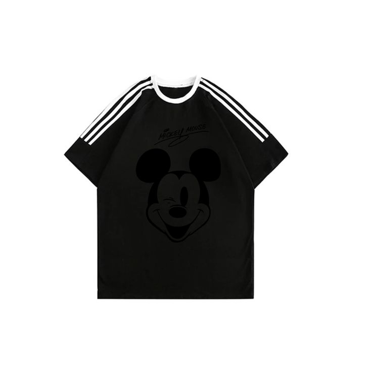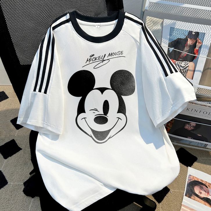 Jessica Kaos Oversize Wanita Garis Tiga | Mickey print T-shirt | atasan wanita korean style American Street Retro Style