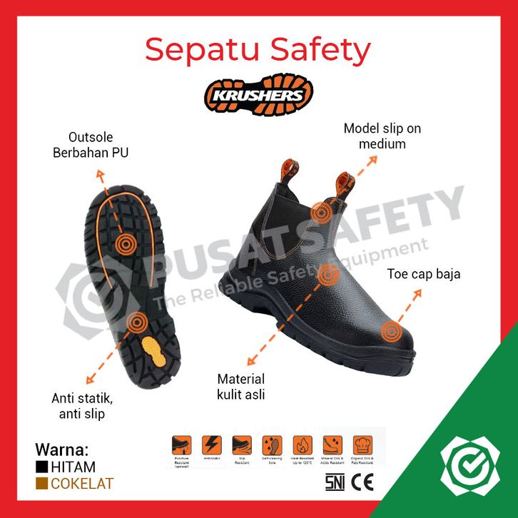 Sepatu Safety Krushers Nevada Kulit Kerbau Cokelat/Hitam