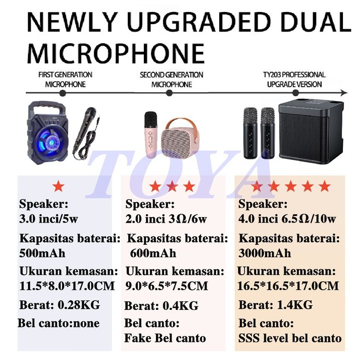 Smart Speaker Original TOYA Speaker bluetooth karaoke Toya ty-203 Bluetooth Speaker 2 MIC HD sound quality 4.0 inci/10W
