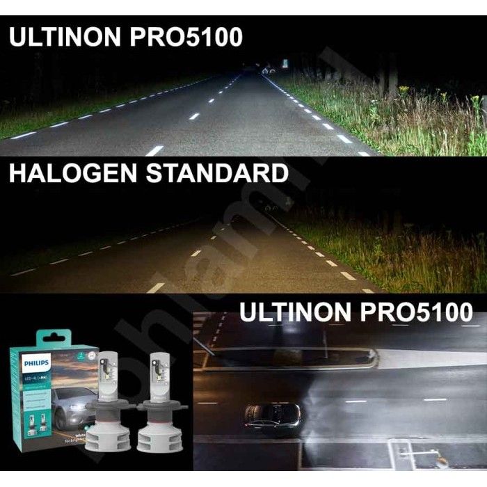 Lampu Mobil LED Philips ULTINON PRO5100 H4 H11 HB3/4 H11Fog H7 Headlamp Foglamp