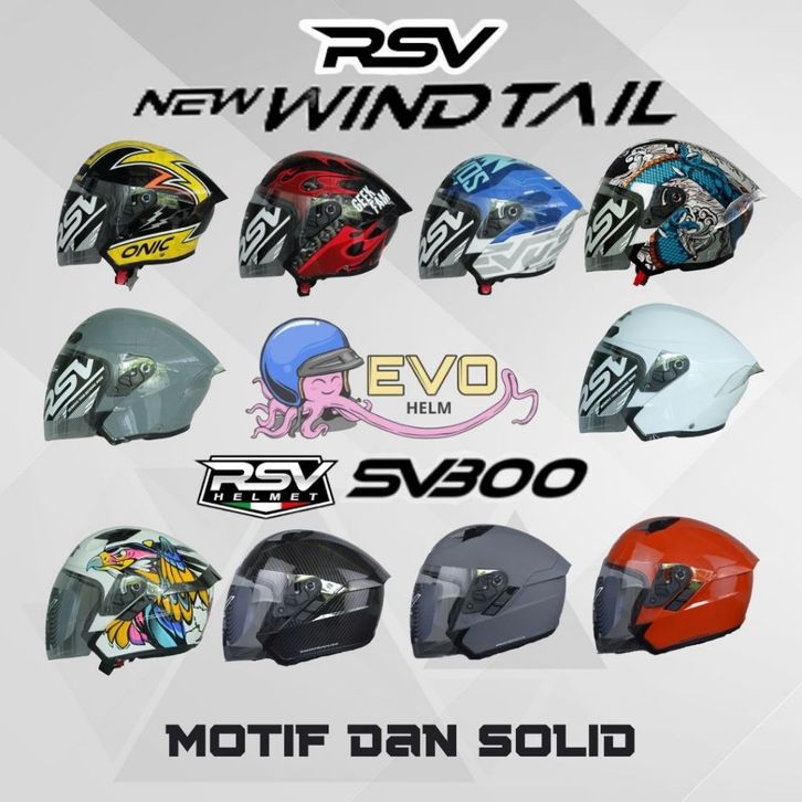 TERMURAH✅ HELM RSV SV300 & RSV WINDTAIL SOLID MOTIF ORIGINAL, RSV HELMET OFFICIAL, HELM HALF FACE PRIA WANITA