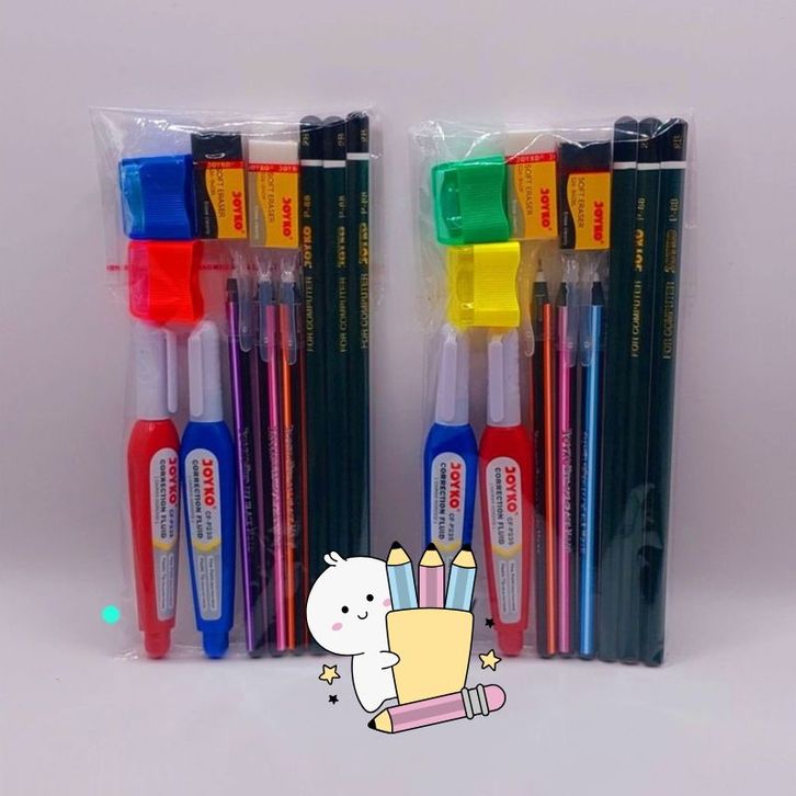 Perlengkapan alat tulis sekolah Joyko 1 Set 12 IN 1 / paket Lengkap A / pensil, pulpen,tip x,