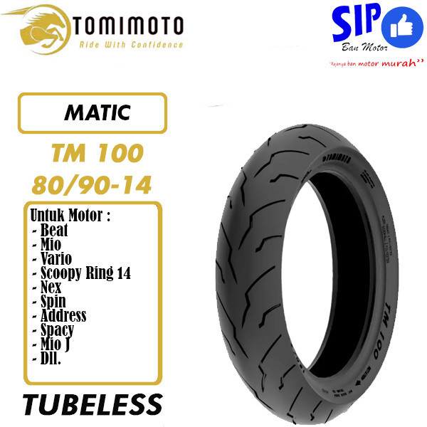 Ban motor matic Tomimoto TM100 ukuran 80 90 14 Tubeless Untuk motor beat mio vario 125