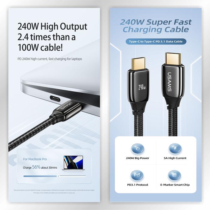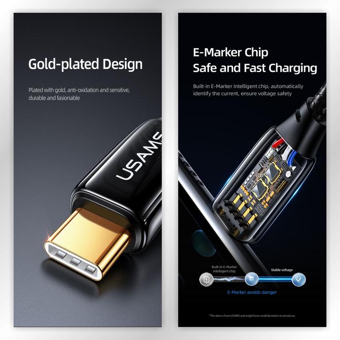 FLASH SALE USAMS U82 KABEL DATA TYPE C TO TYPE C PD31 240W ZYNC ALLOY 12M 12M HITAM