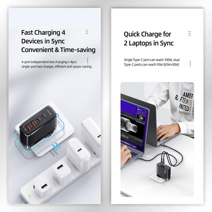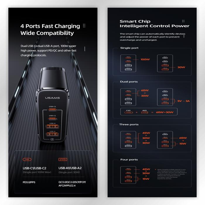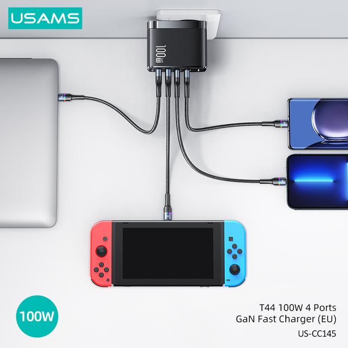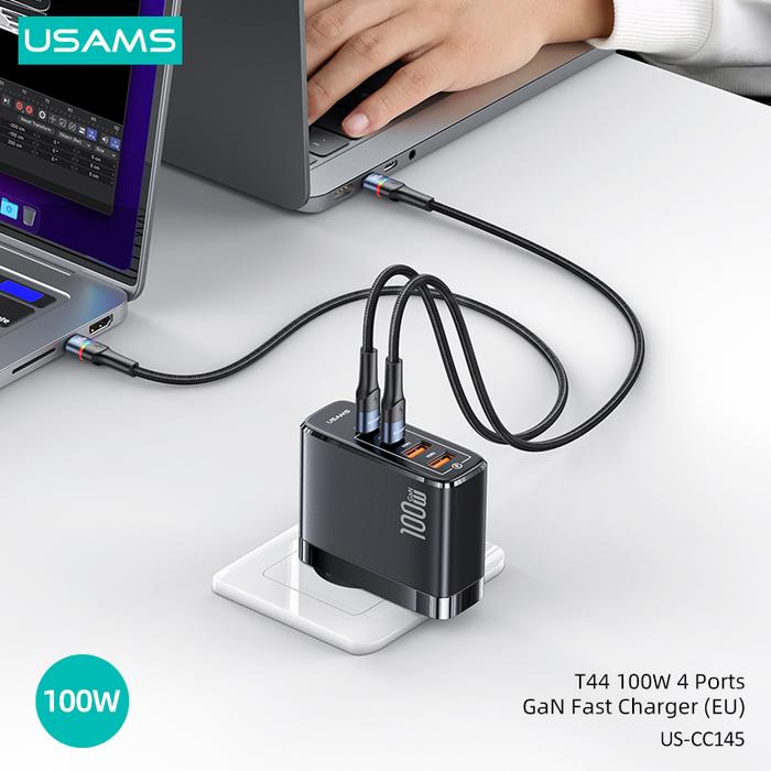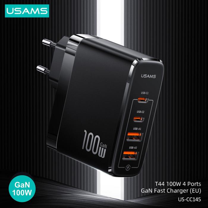 FLASH SALE USAMS ADAPTER FAST CHARGER GAN 100W 4 PORTS 2A2C HITAM