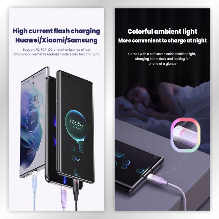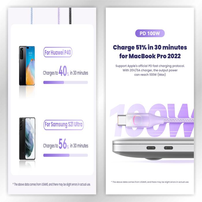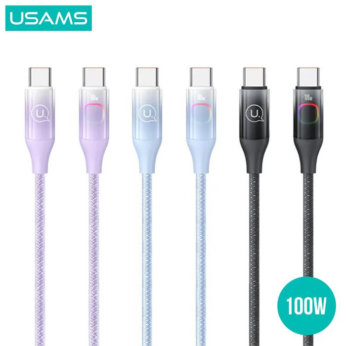 FLASH SALE USAMS XM SERIES KABEL DATA FAST CHARGING C TO C 100W WITH COLORFUL LIGHT GRADIANT HITAM