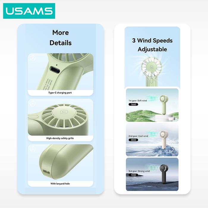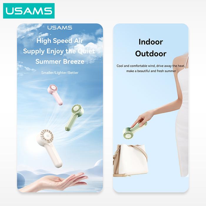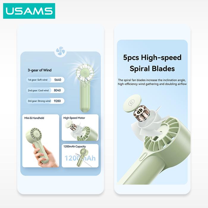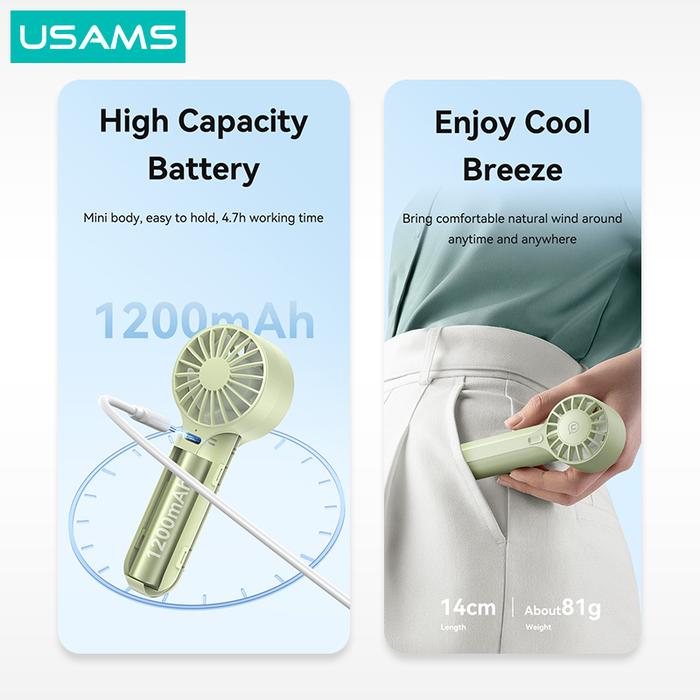 FLASH SALE USAMS ZB288 KIPAS ANGIN PORTABLE HIGH SPEED HANDHELD MINI FAN 1200MAH HITAM