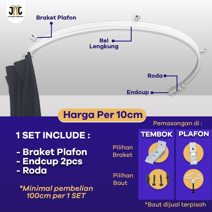 REL GORDEN LENGKUNG FLEKSIBEL BATANG PENYANGGA GORDEN JENDELA SIKU FULLSET PLAFON