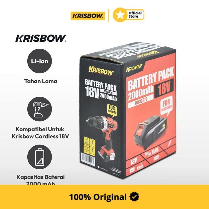 Krisbow Part Baterai Recharge Bor Listrik 18V 2Ah Irab182