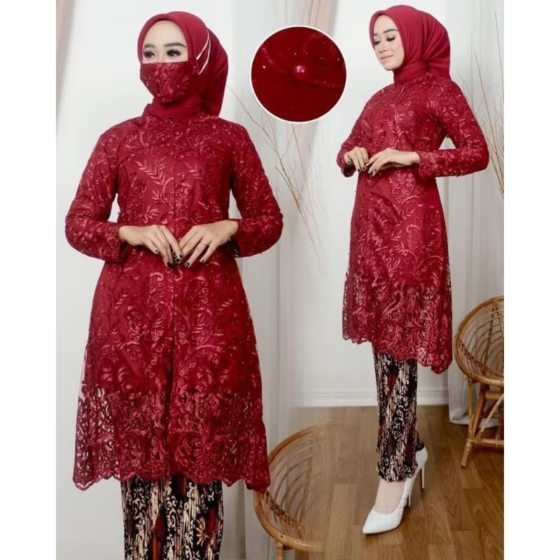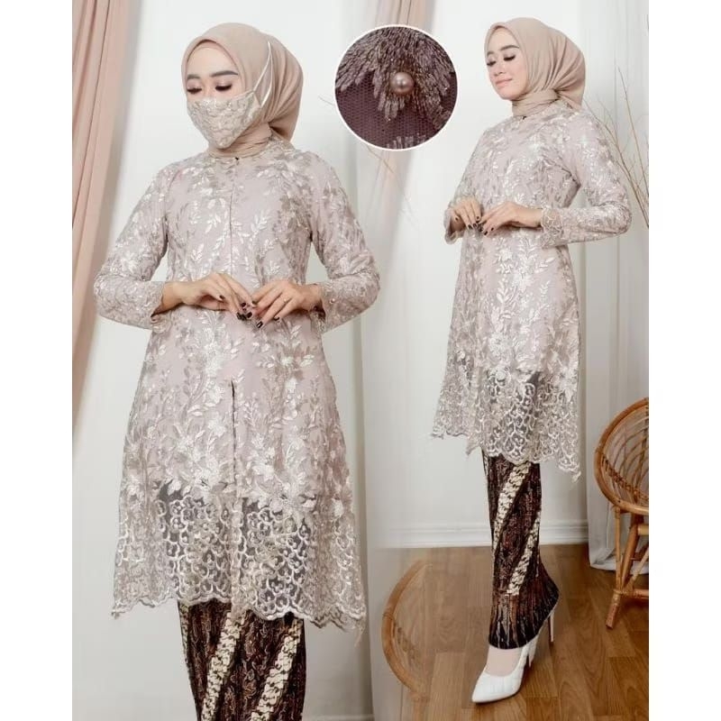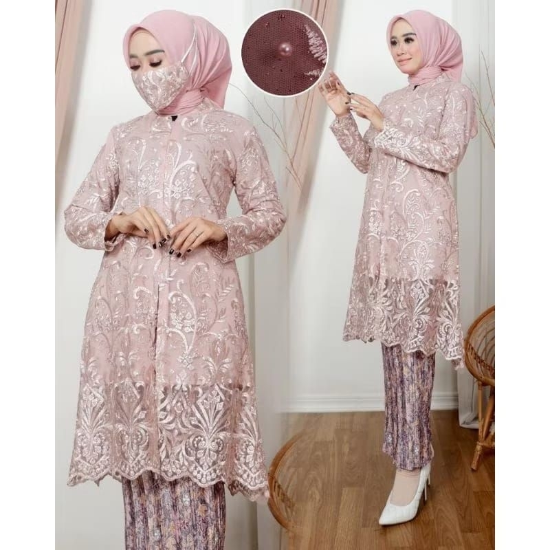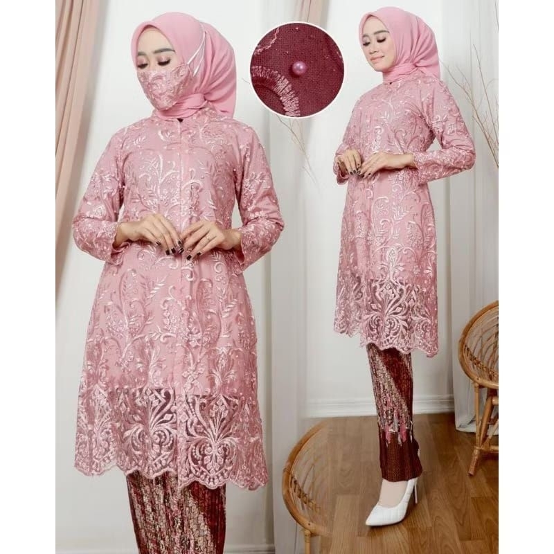 SETELAN KEBAYA TUNIK TULLE-MODERN-KEKINIAN-SETELAN KONDANGAN-KEBAYA WISUDA-TERBARU