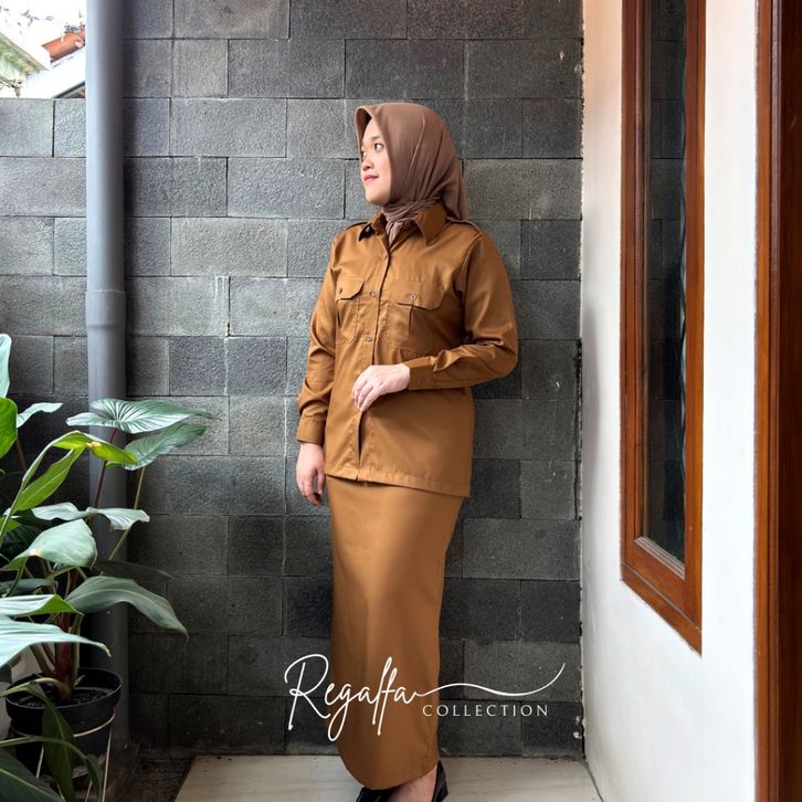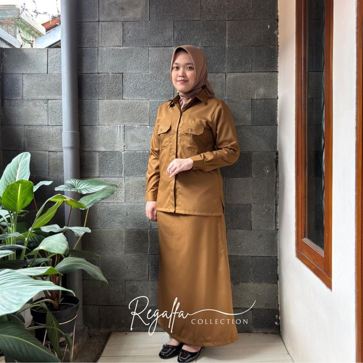 Setelan PNS Wanita Kemeja Dinas Warna Khaki Tua