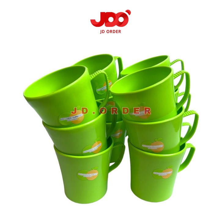 ( HARGA PROMO ) 1 Lusin (12 Pcs) Cangkir Mug Kopi Plastik 300ml Golden Sunkist MOK 7026