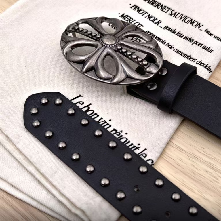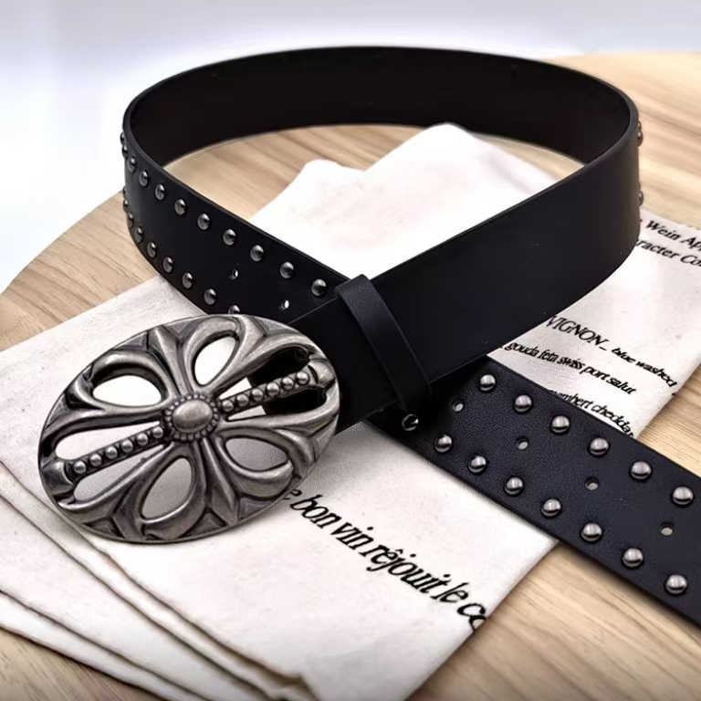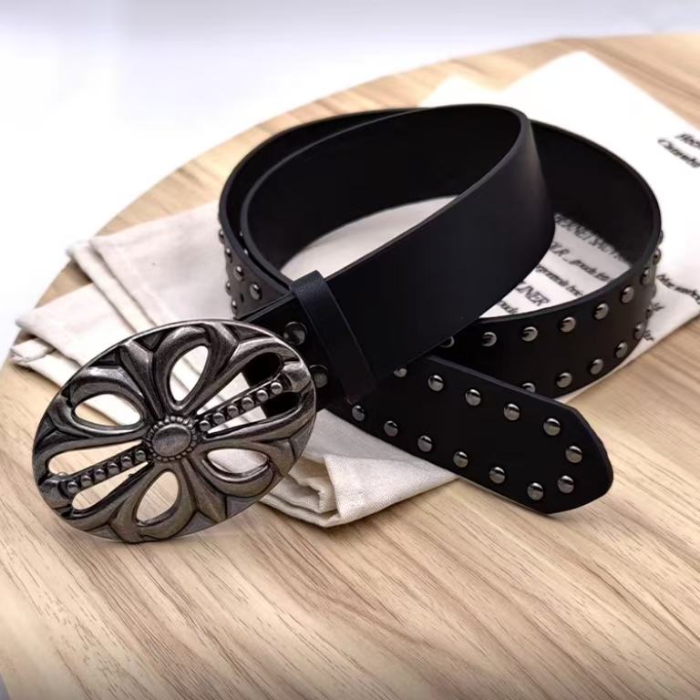 Ikat Pinggang Pria Dan Wanita Kulit Asli Retro Denim Punk Tengkorak Terlaris