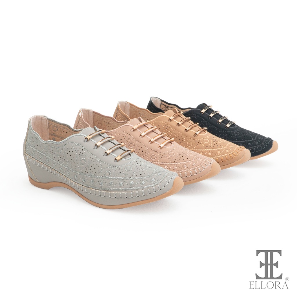 ELLORA EY-4244 Sepatu Wedges Wanita Bahan Dove Import 4cm