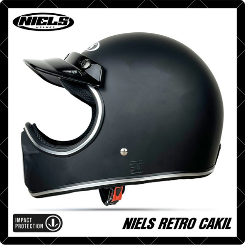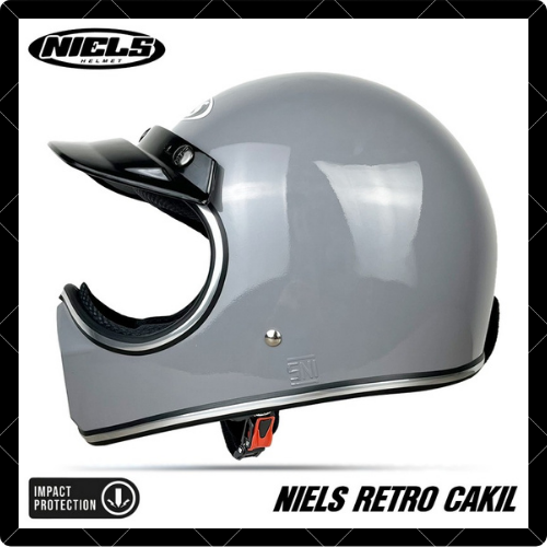 Helm Full Face Retro NIELS Cakil List Chrome Free Pet SNI