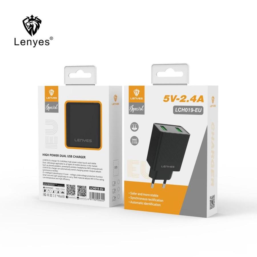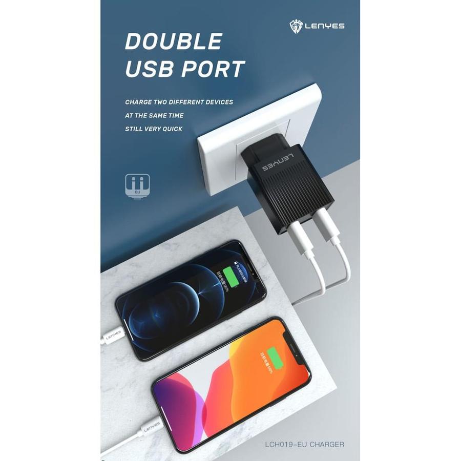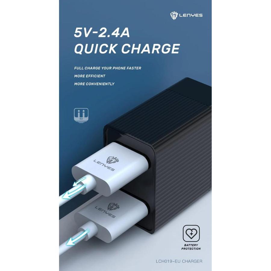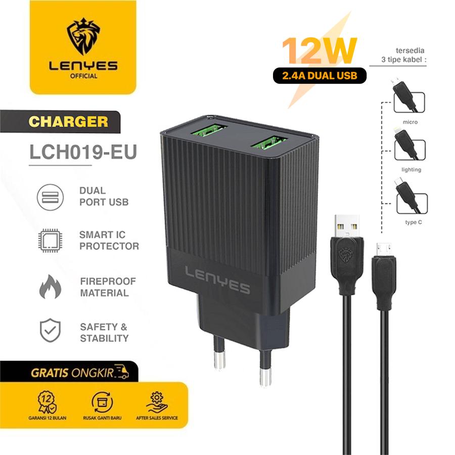Charger HP Kepala Charger LENYES LCH019 12W 2.4A 2 USB Adaptor Adapter Handphone Original Original Official Store