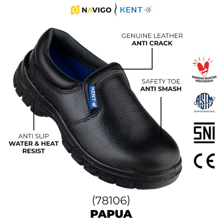 NAVIGO X KENT Sepatu Safety Pria Wanita KENT PAPUA 78106 - SNI ASTM CE Kulit Asli Ujung Besi Slip Resist Size 37 - 46