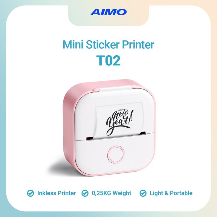Printer Mini Original AIMO T02 Mobile Photo Label Printer 50 mm Mini Sticker Maker Thermal Printer Inkless Portable Blu