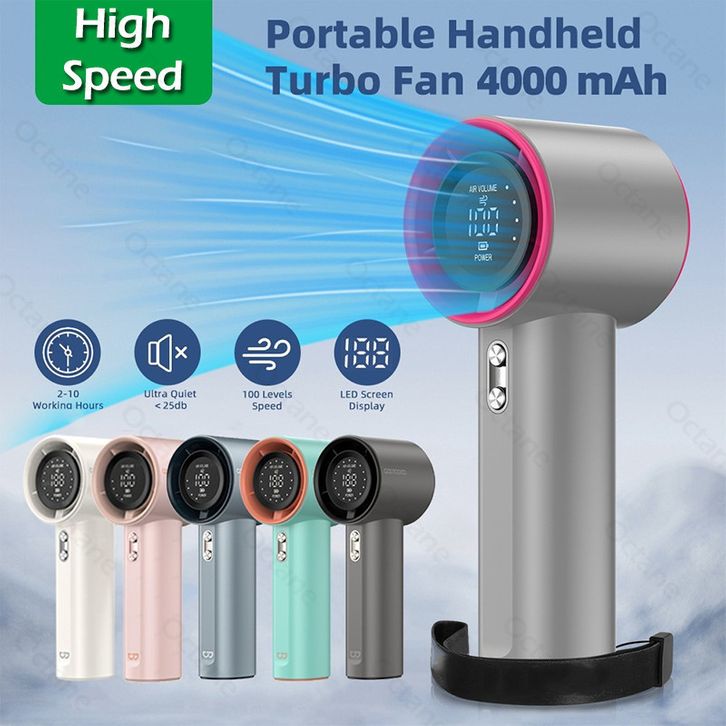 Kipas USB Mini Original OCTANE Kipas Angin Portable 13000RPM - Teknologi Turbo Cooling, Baterai 4000mAh 12 Jam, 100 Lev