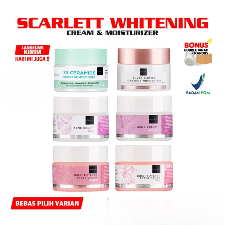 Cream Scarlett Whitening Hydrating [Free Gift] Brightly Ever After Acne Day Night Krim BPOM Felicya